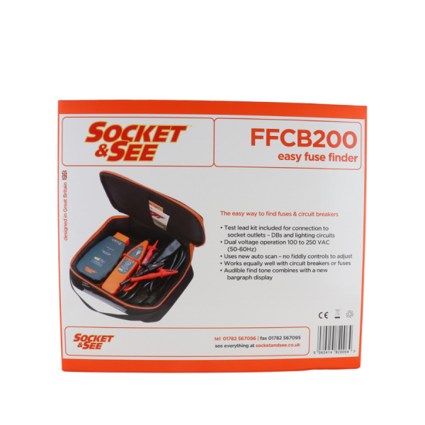 The Socket & See FFCB200 Easy Fuse Finder Kit simplifies the task of identifying fuses and circuit breakers in any setup. This kit features a user-friendly interface that utilises both visual and auditory signals to accurately detect the correct fuse or breaker. As you approach the right one, the bar graph indicator lights up progressively while the frequency of sound pulses increases, ensuring you never miss the target.